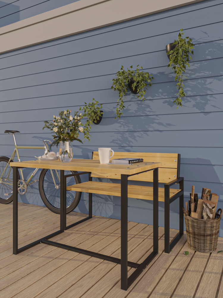 Купить Стол садовый (Цвет каркаса: Черный, Цвет ЛДСП: Сосна) в магазине