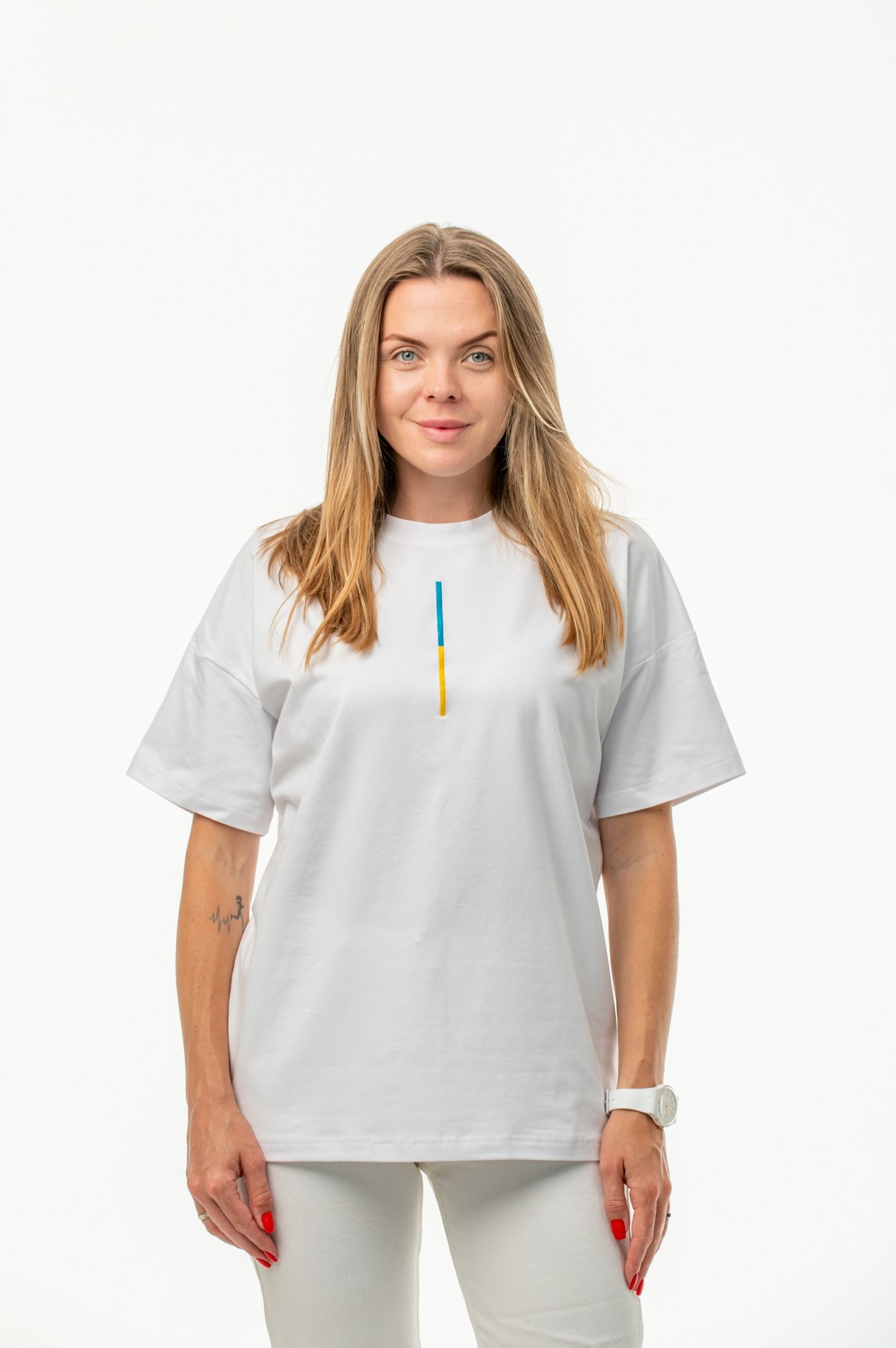 Унісекс оверсайз футболка з вишивкою "Кольори свободи" біла розмір XL