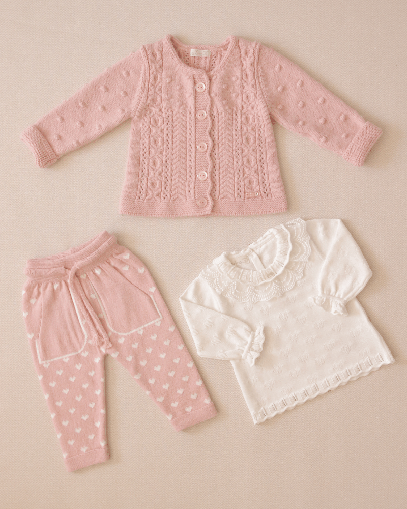 Тритечастен Комплект за Бебе Момиче: Жилетка, Панталон от Мериносова