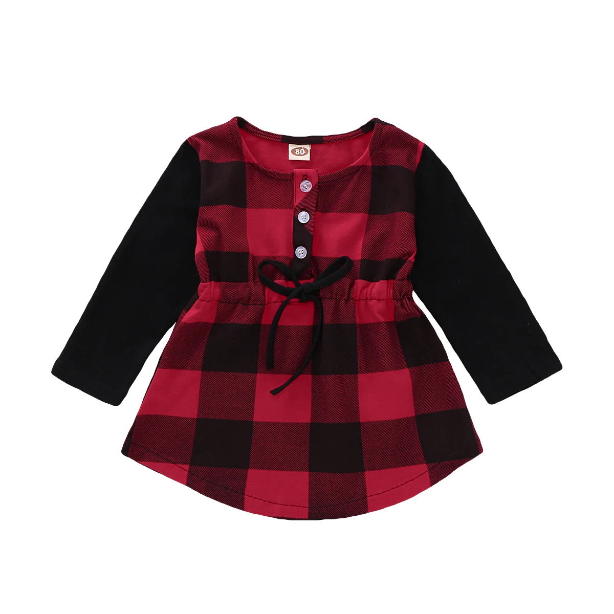 Осенне-осеннее рождественское платье в клетку для маленьких девочек