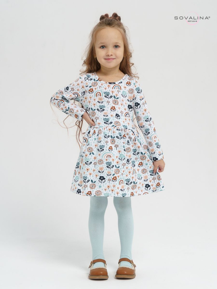 Платье Девочки SOVAlina белый, зеленый прямое Повседневный Длинный
