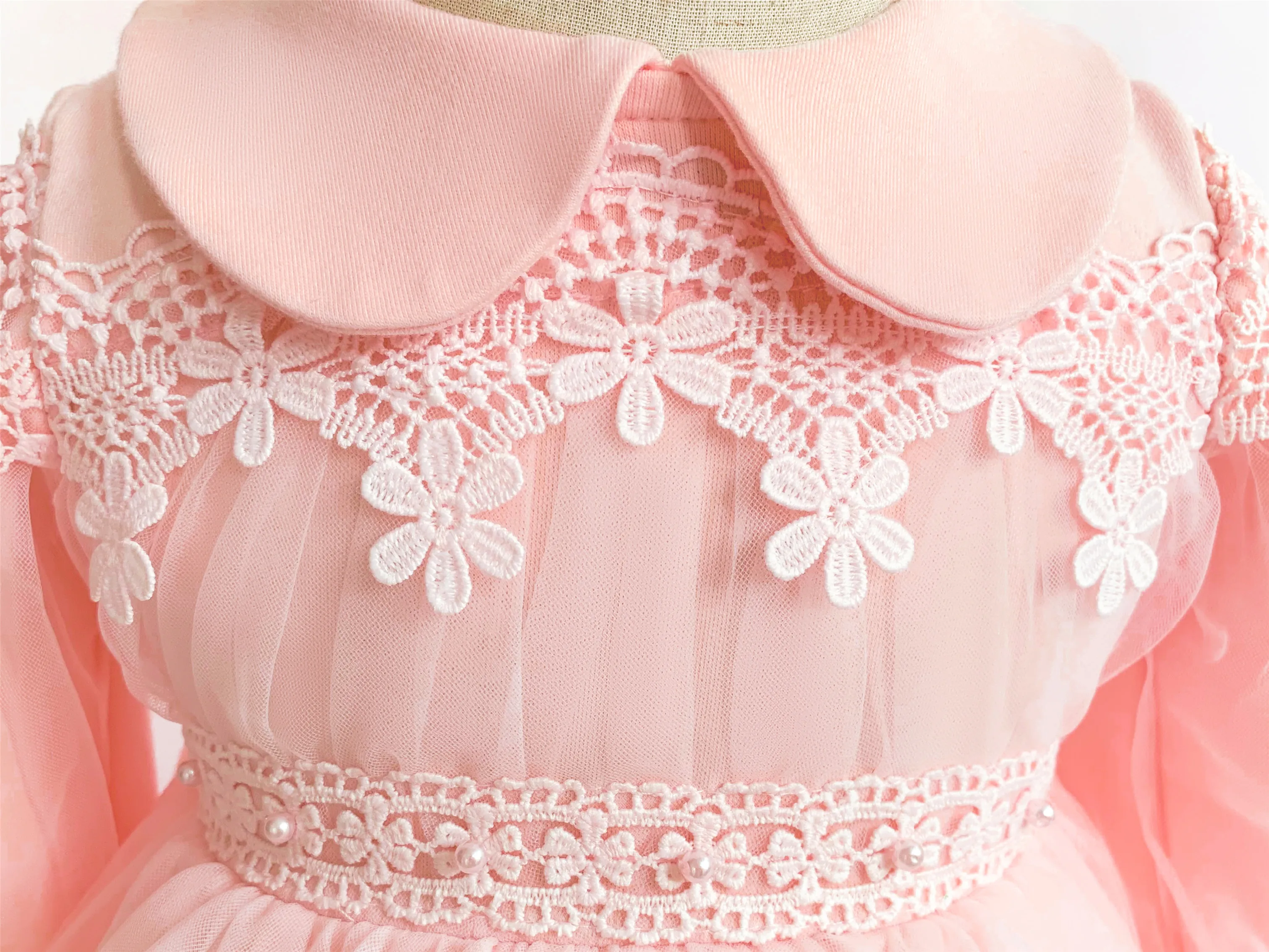 Розовое кружевное платье с цветочным узором для маленьких девочек