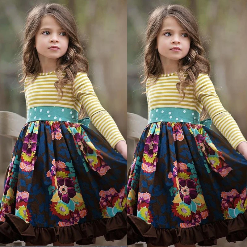 Милые детские платья с длинными рукавами и цветочным принтом осенняя