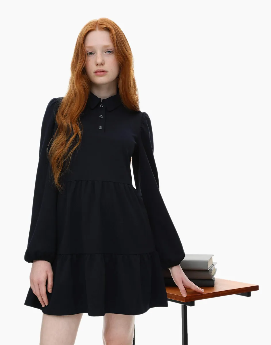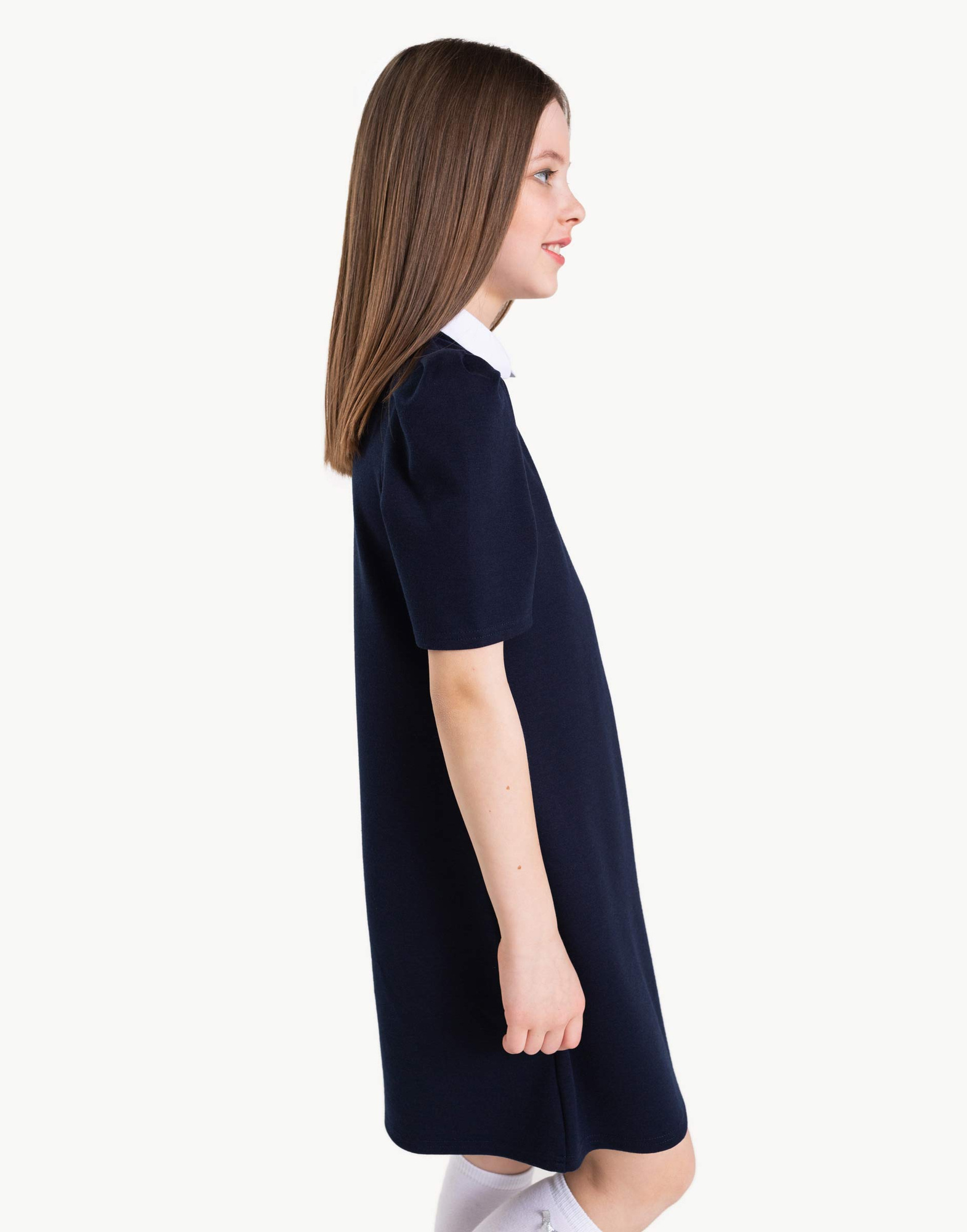 Синее платье с контрастным воротником для девочки GSU000590-1