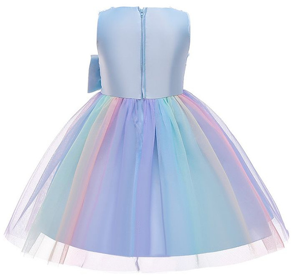Платье для девочки без рукавов с пайетками и радужной сеткой для