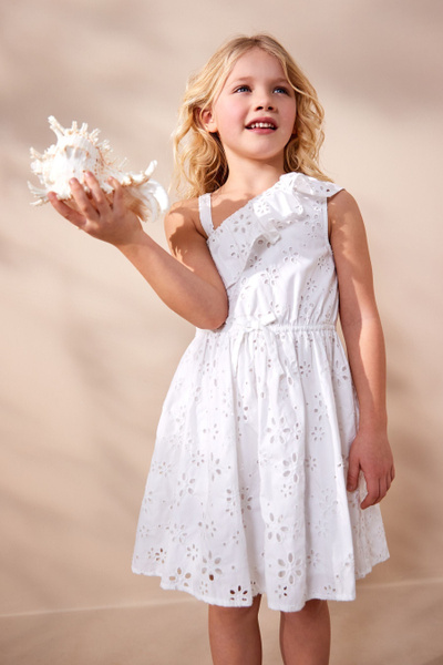 Белое кружевное платье на одно плечо, Девочки, размер 140