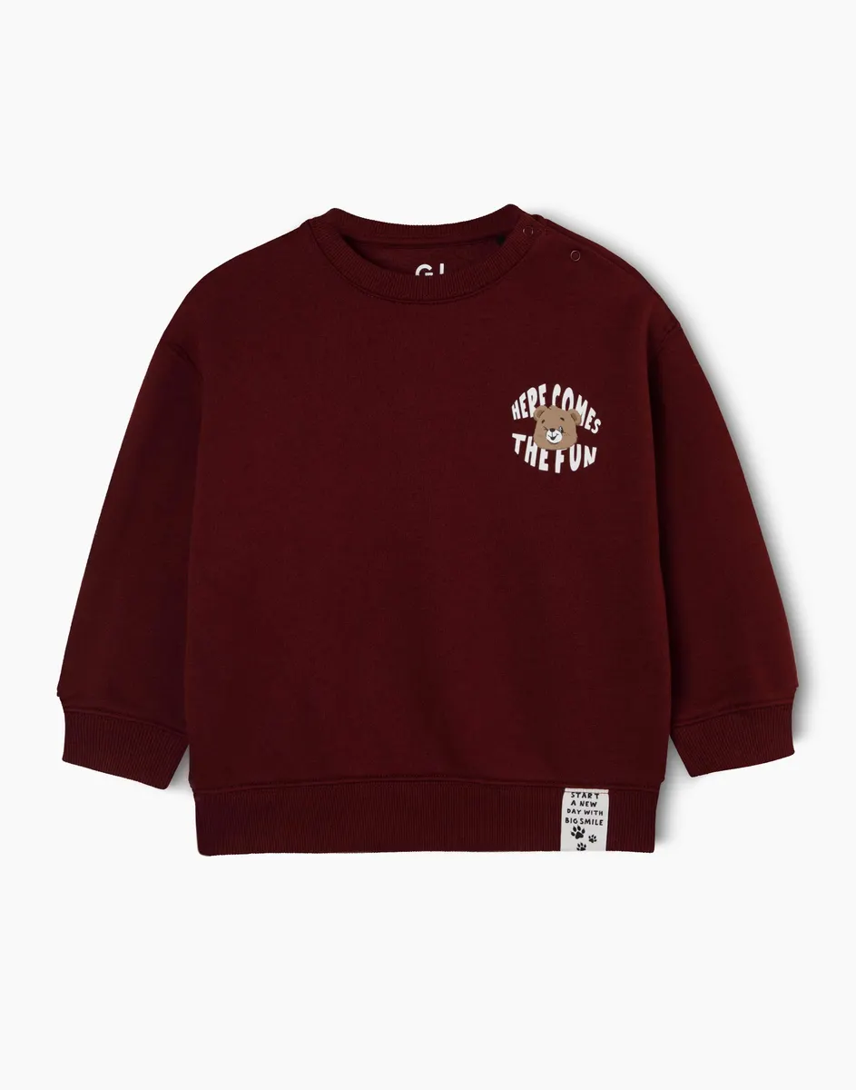 Бордовый свитшот oversize с принтом и нашивкой для мальчика BAC012115-2