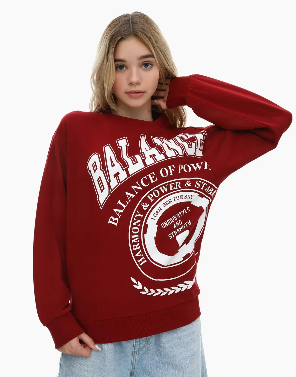 Бордовый свитшот oversize в колледж-стиле для девочки GAC020685-2