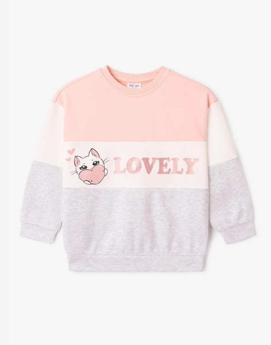Свитшот колор-блок с принтом Lovely для девочки GAC015331-1 купить по