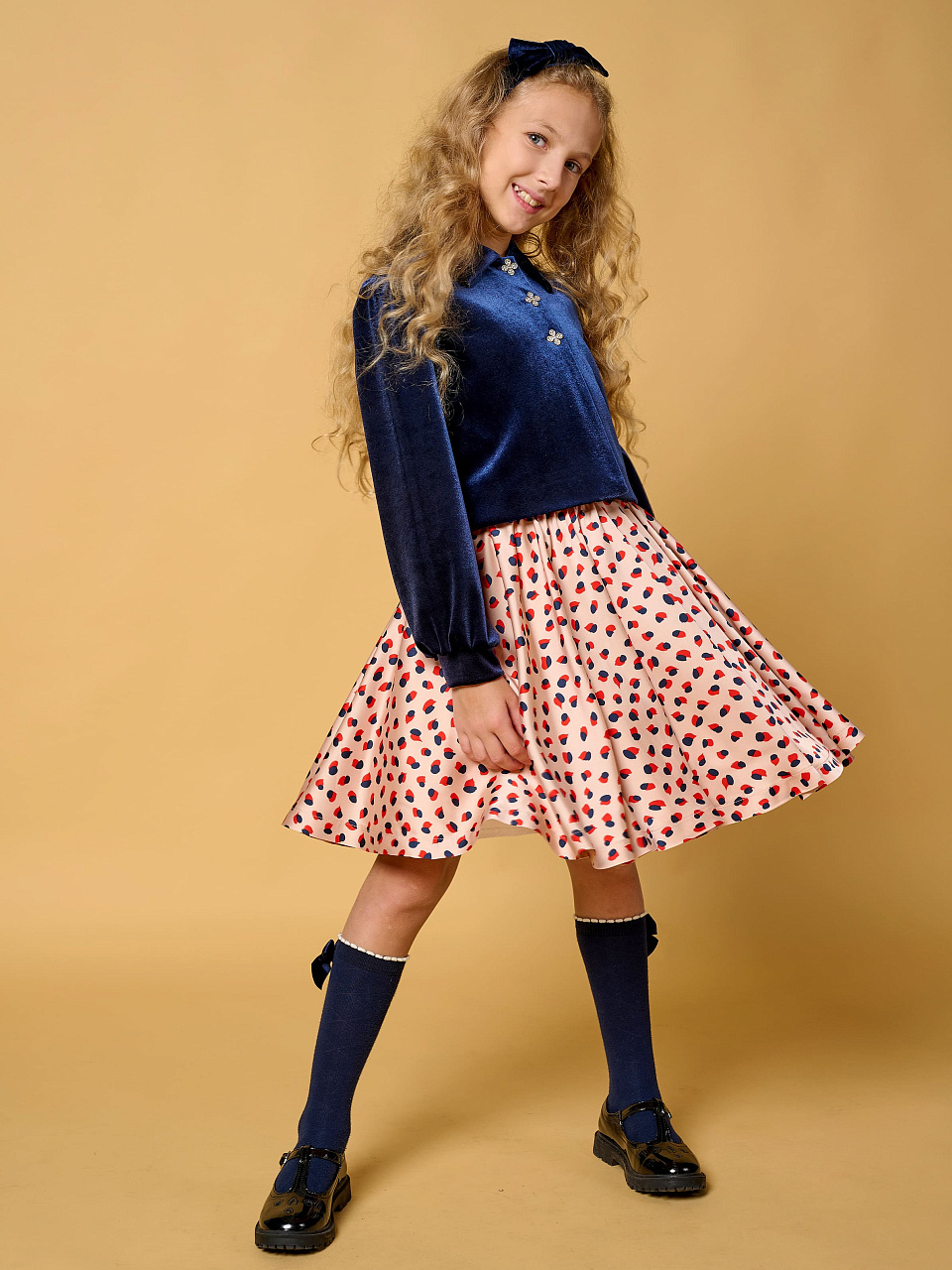 Нарядная юбочка из трикотажа оттенка "белая лилия" с цветочным принтом