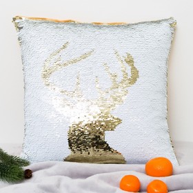 Наволочка декоративная Хамелеон 40*40 см Олень, пайетки, 100% п/э